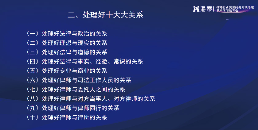 吕甲木律师提出“处理好十大关系”加强律师职业道德,提升职业素质: