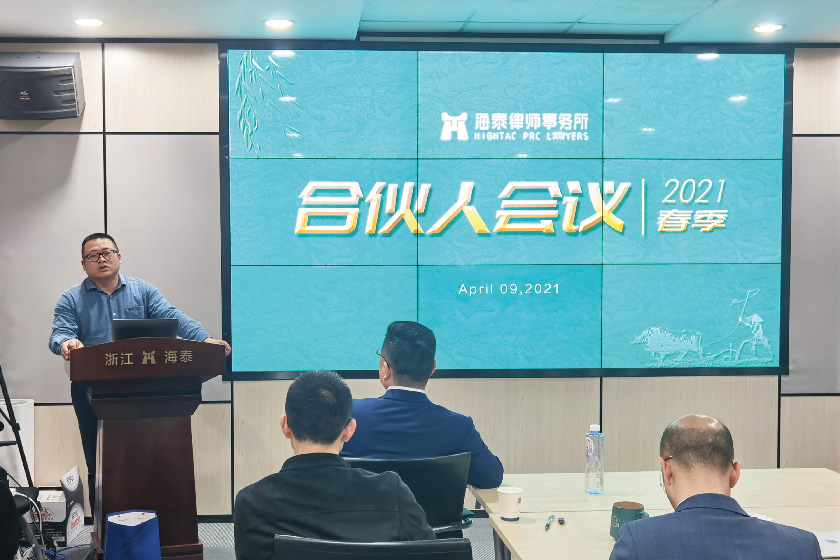 2021年4月9日晚,浙江海泰律师事务所2021春季合伙人会议于总所大会议室圆满召开,海泰所邬辉林主任主持会议,总分所近30位合伙人齐聚一堂,共襄思想盛宴。会议对事务所重大议案进行民主表决,通报2021年一季度海泰业务发展情况,各分管执委对二季度工作思路、计划进行汇报等。