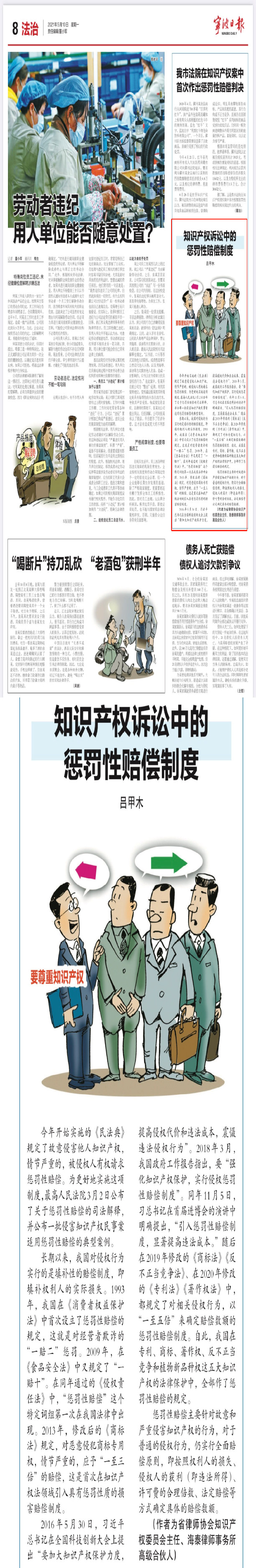 浙江省律师协会知识产权委员会主任、海泰所高级合伙人吕甲木律师题为《知识产权诉讼中的惩罚性赔偿制度》的文章,详细阐述了这一制度的发展历程及适用情形。