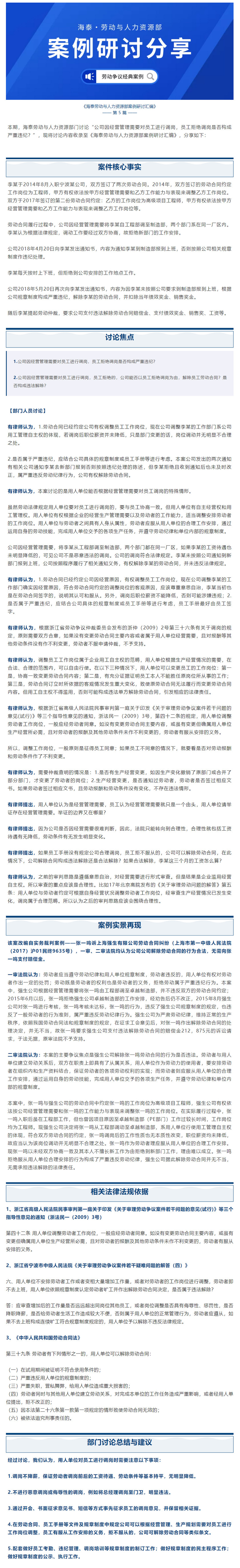 公司因经营管理需要对员工进行调岗,员工拒绝调岗是否构成严重违纪?| 海泰劳动与人力资源部案例研讨汇编⑤