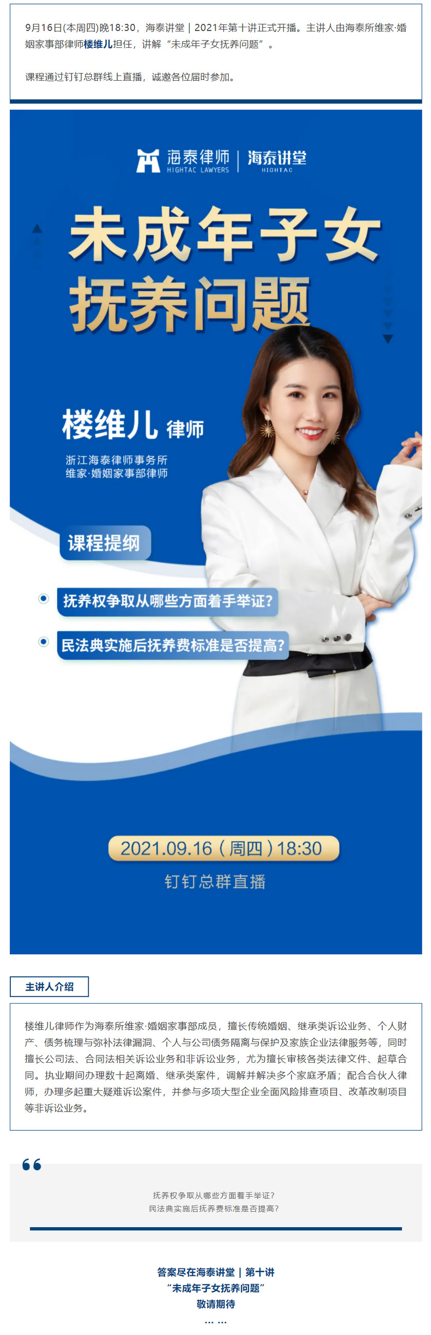 海泰讲堂·预告 | 楼维儿律师讲解“未成年子女抚养问题”