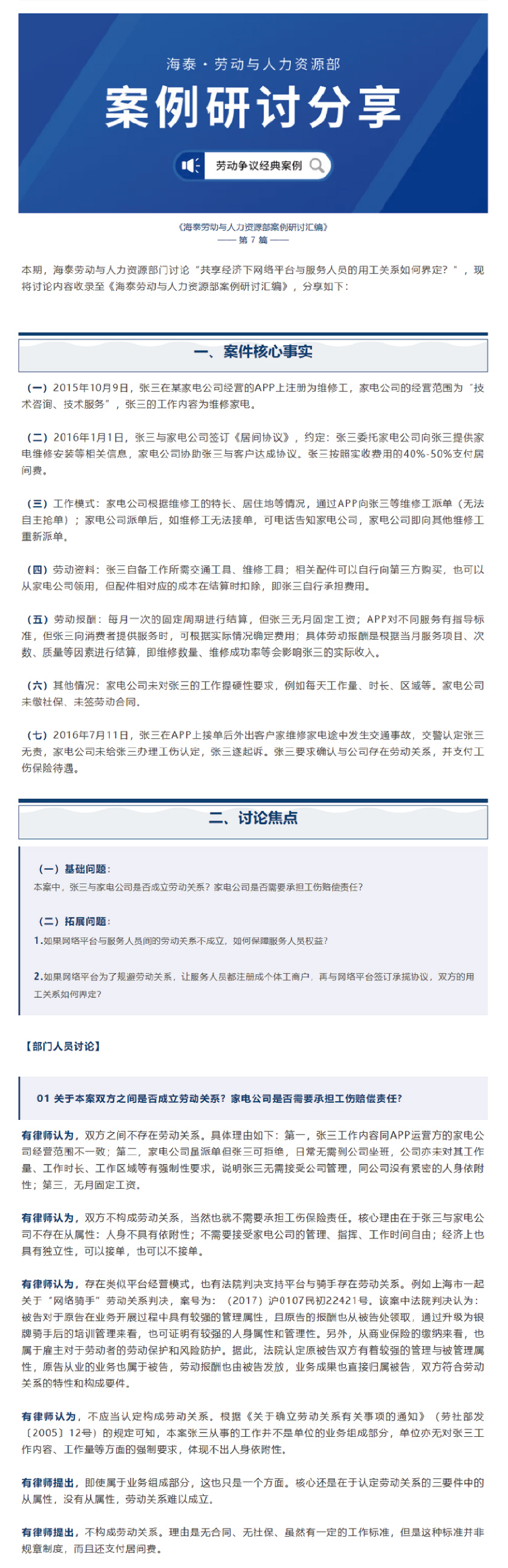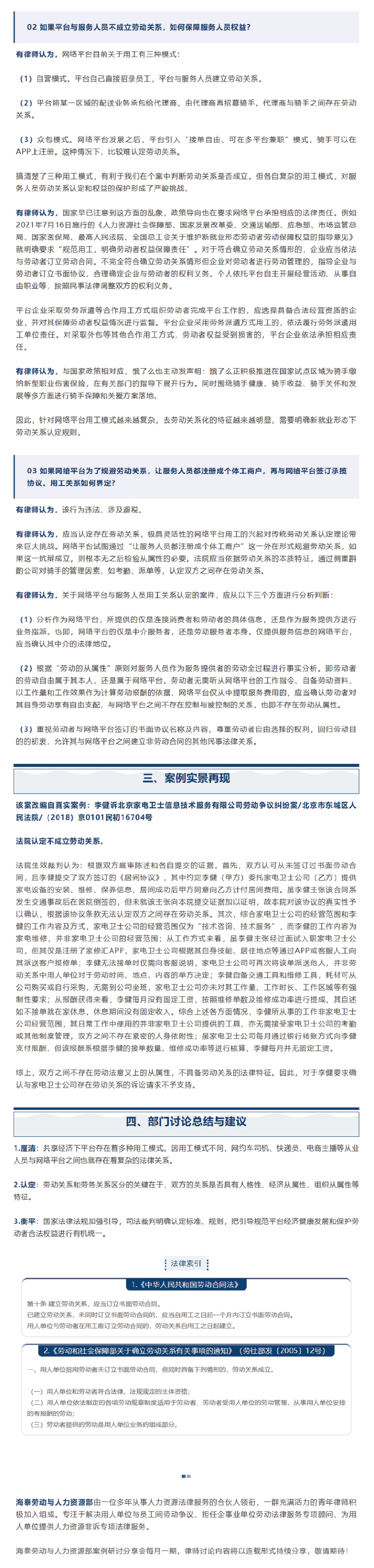共享经济下网络平台与服务人员的用工关系如何界定?| 海泰劳动与人力资源部案例研讨汇编⑦