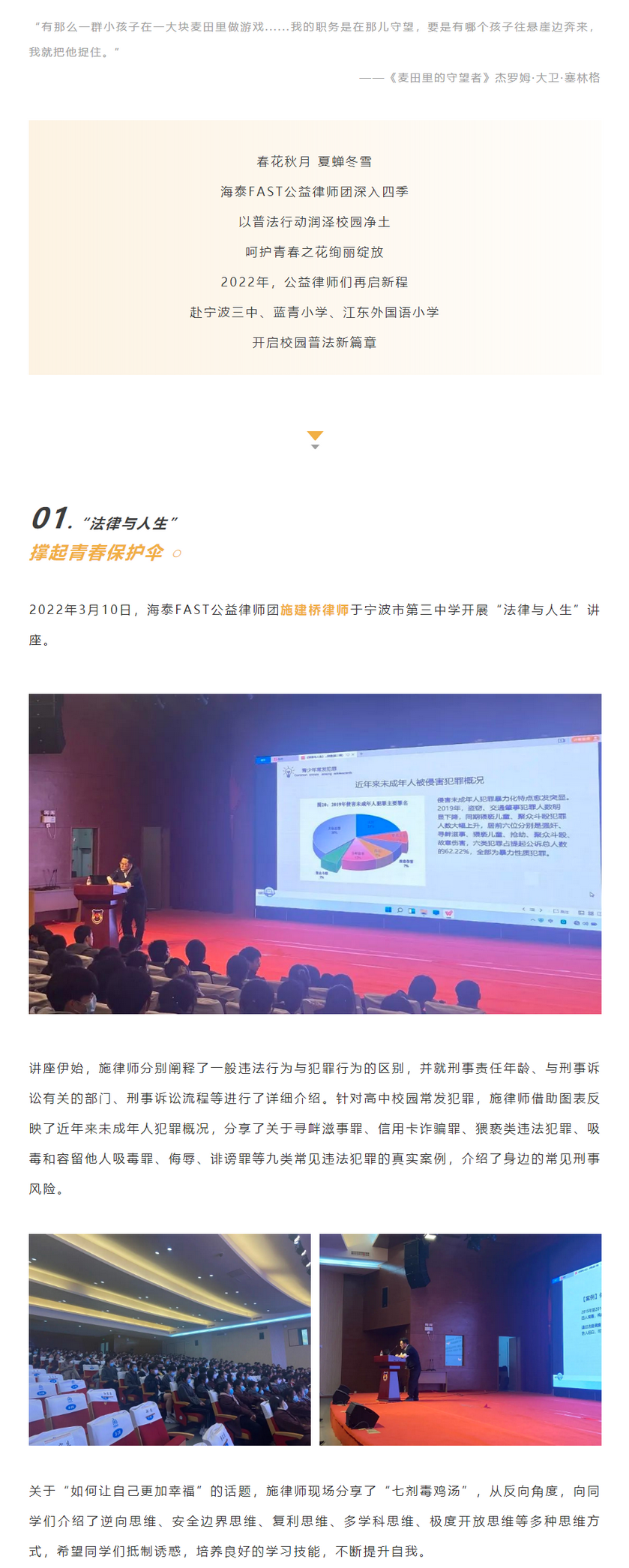 青春有你 与法同行 | 海泰FAST公益律师团送法进校园,争做“麦田里的守望者”