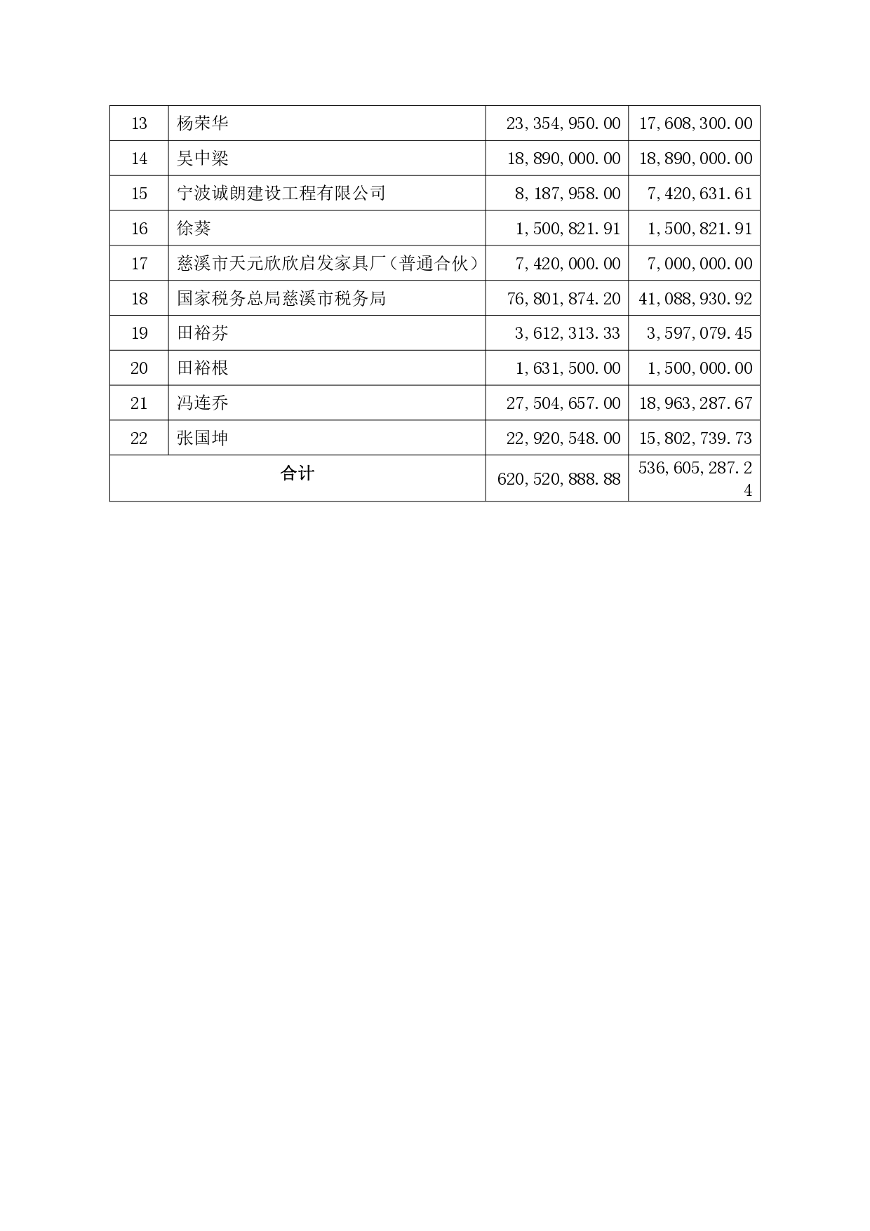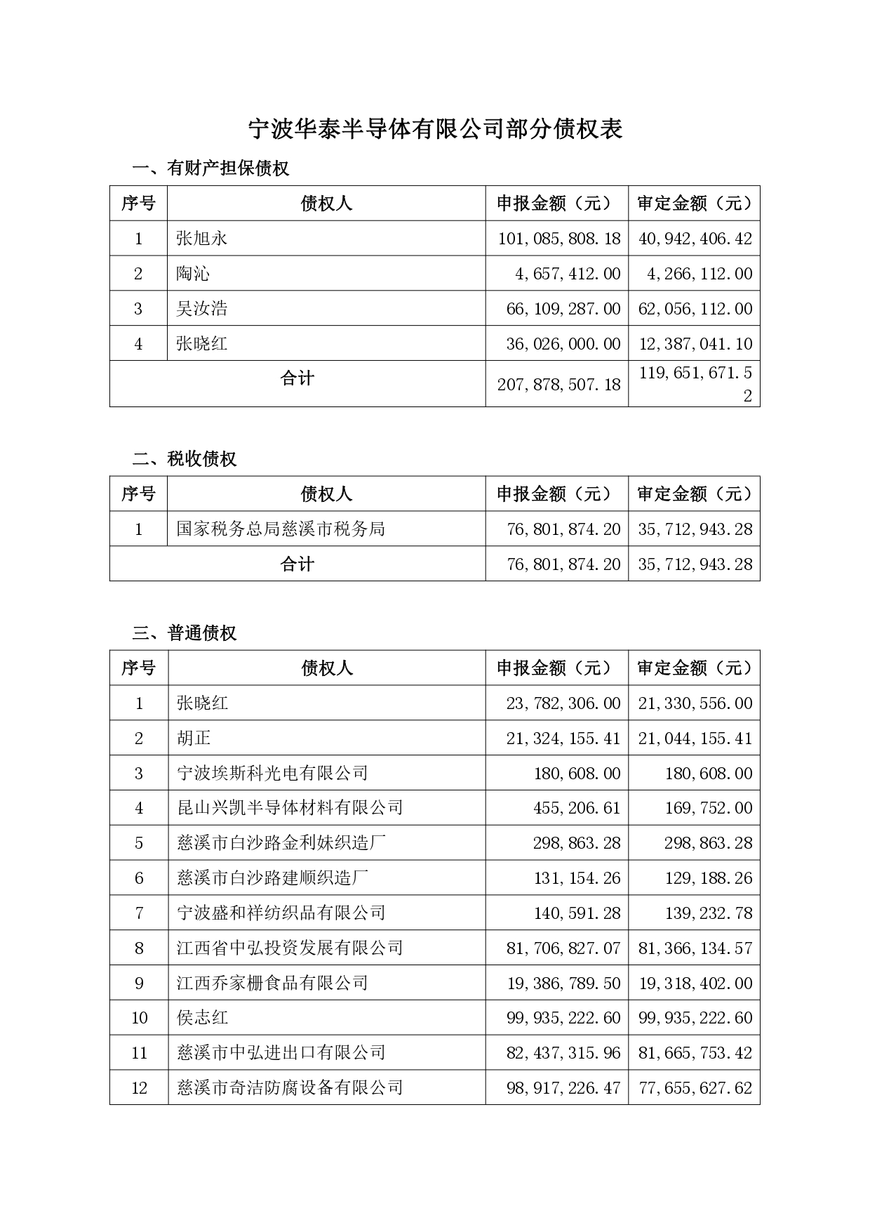 附:宁波华泰半导体有限公司部分债权表