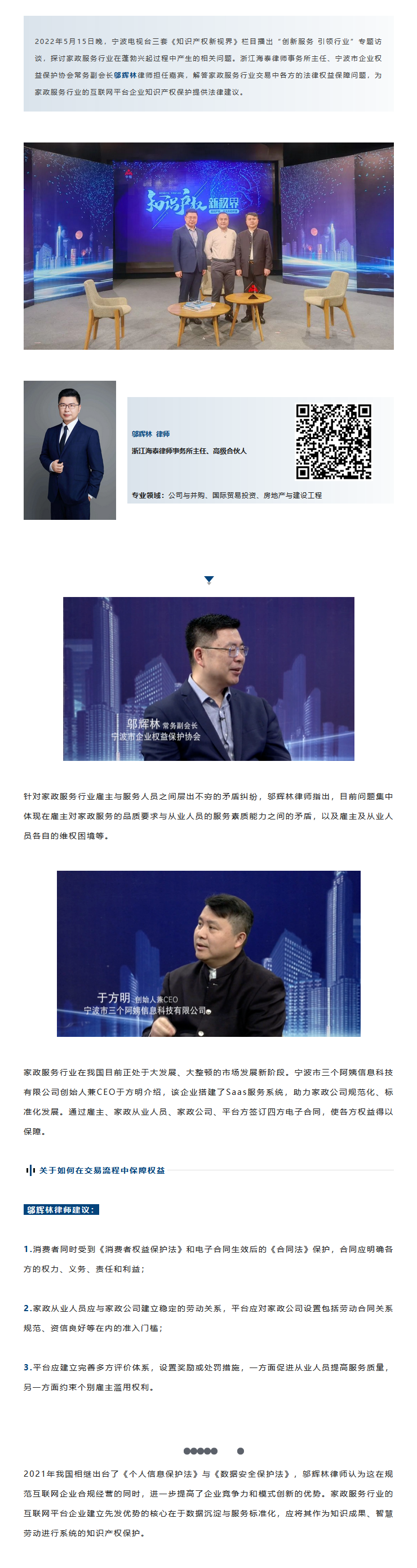 邬辉林律师应邀参加宁波电视台《知识产权新视界》栏目