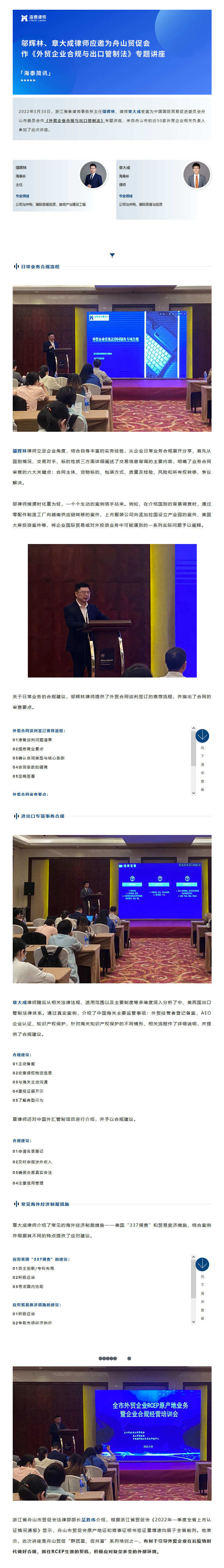 邬辉林、章大成律师应邀为舟山贸促会作《外贸企业合规与出口管制法》专题讲座 | 海泰简讯