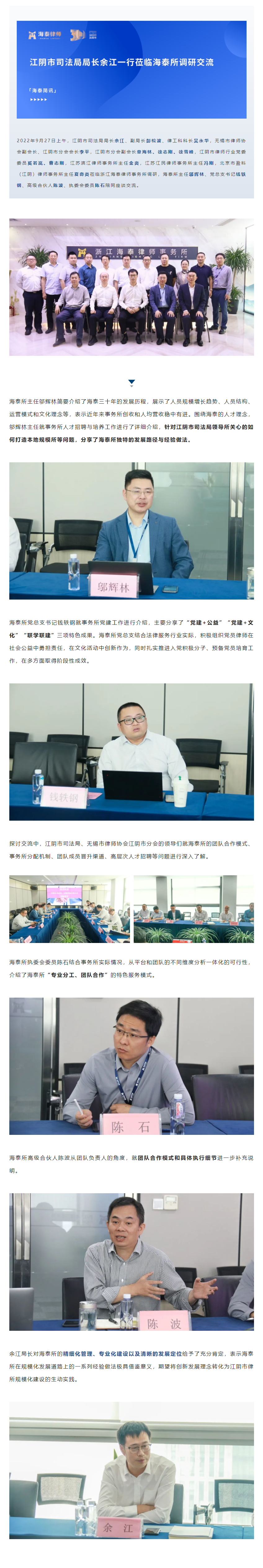 江阴市司法局局长余江一行莅临海泰所调研交流 | 海泰简讯