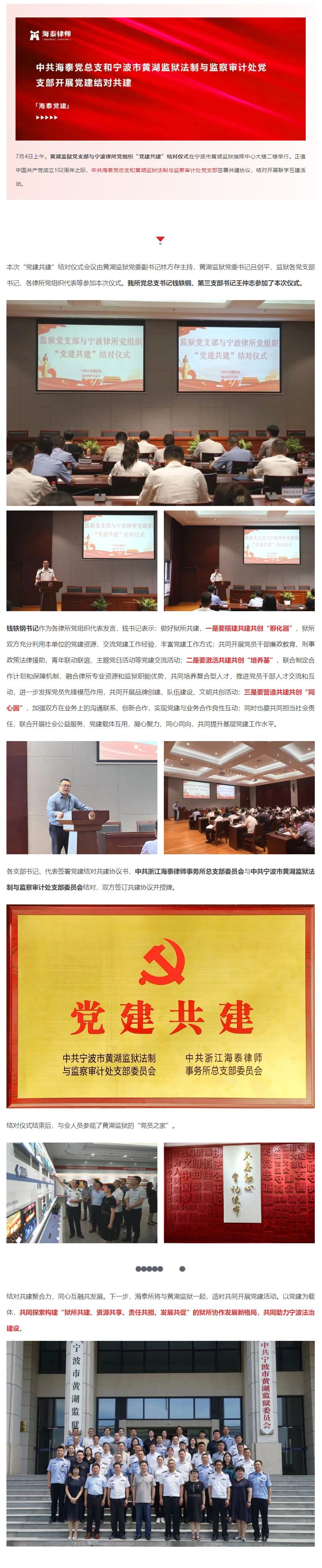 中共海泰党总支和宁波市黄湖监狱法制与监察审计处党支部开展党建结对共建 | 海泰党建