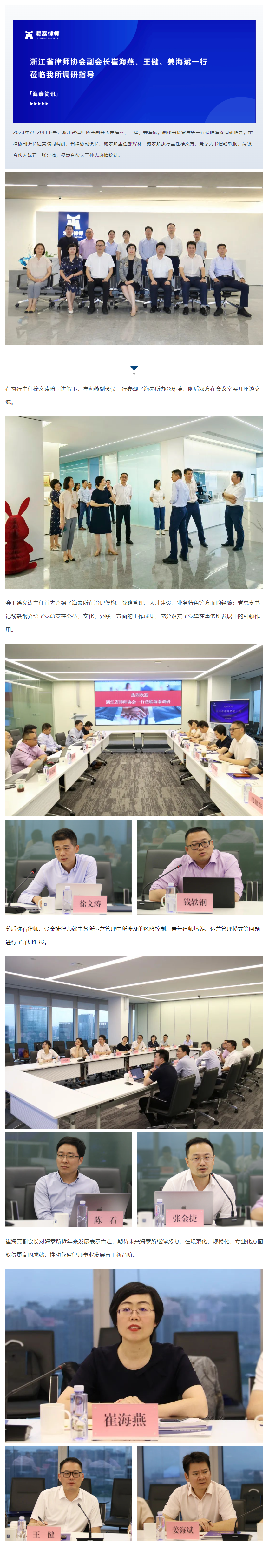 浙江省律师协会副会长崔海燕、王健、姜海斌一行莅临我所调研指导 | 海泰简讯