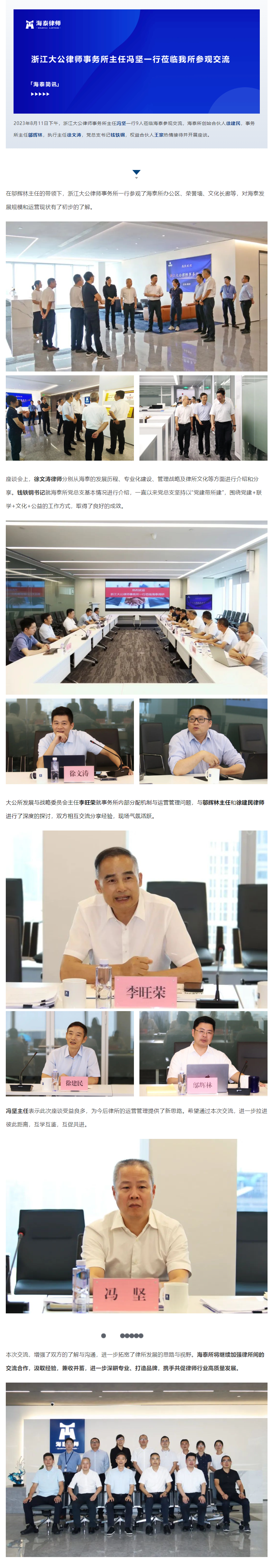 浙江大公律师事务所主任冯坚一行莅临我所参观交流 | 海泰简讯