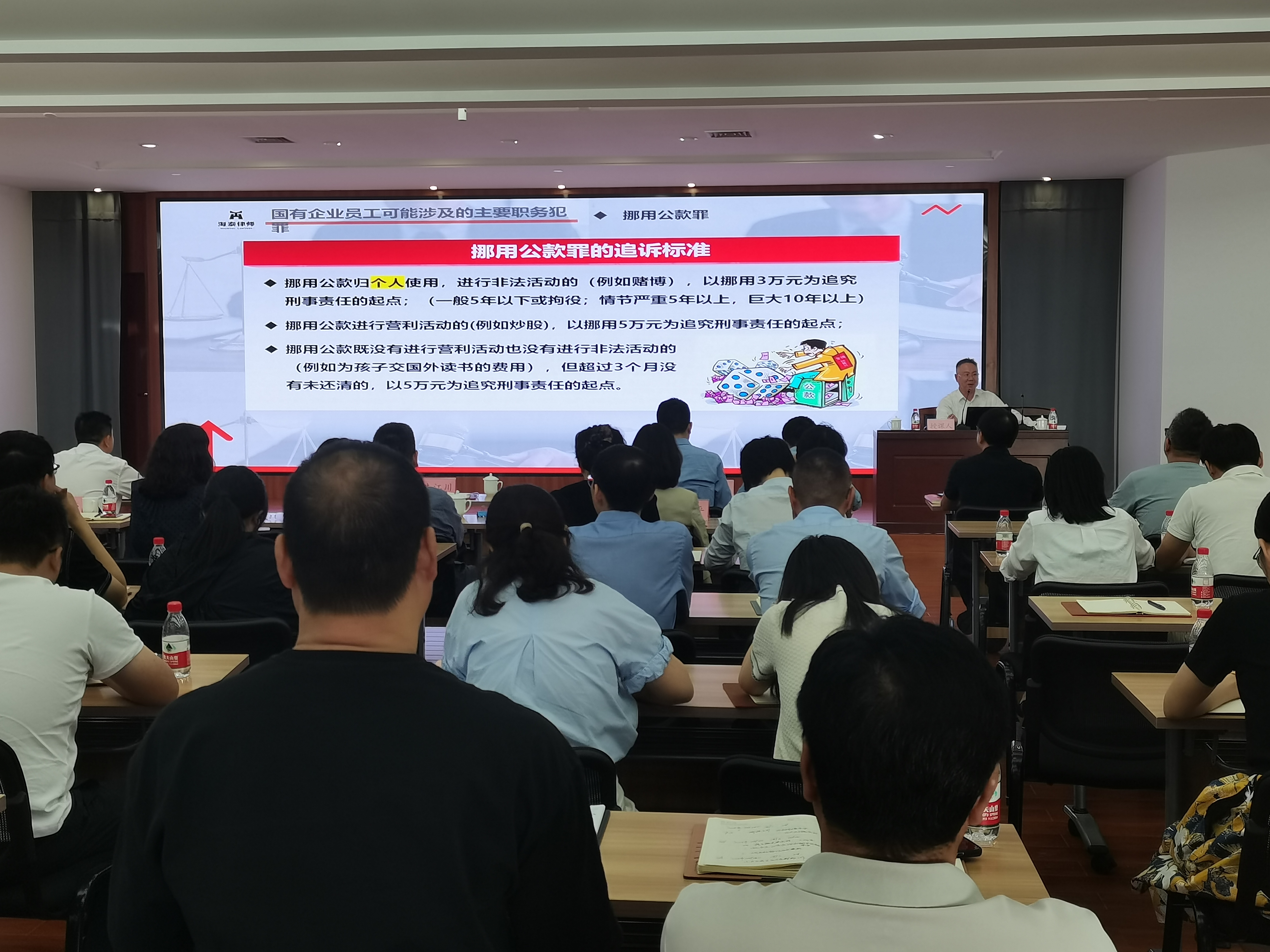 2023年11月1日下午,海泰开发区分所主任石剑平律师受邀为宁波市北仑区城市建设投资集团有限公司的三十余名公司员工作主题为“预防职务犯罪”的普法讲座。