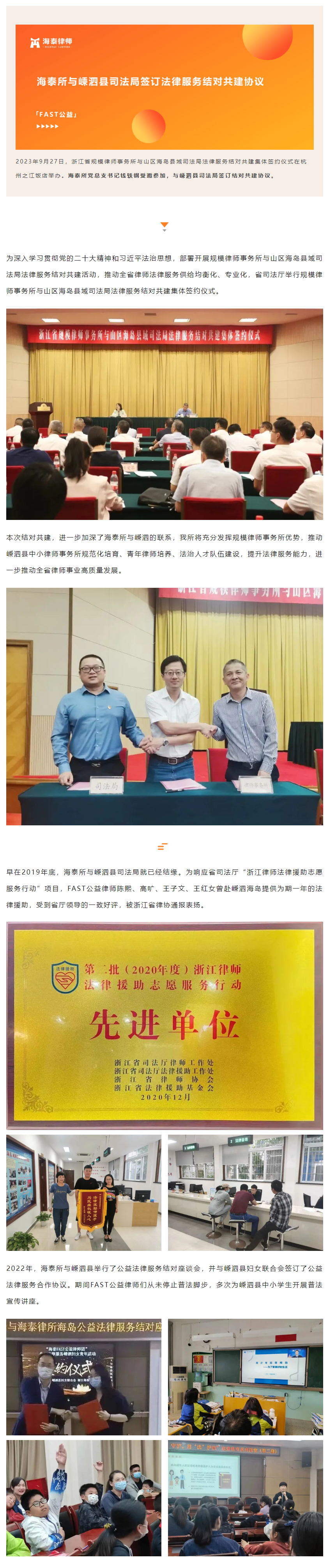 海泰所与嵊泗县司法局签订法律服务结对共建协议 | FAST公益