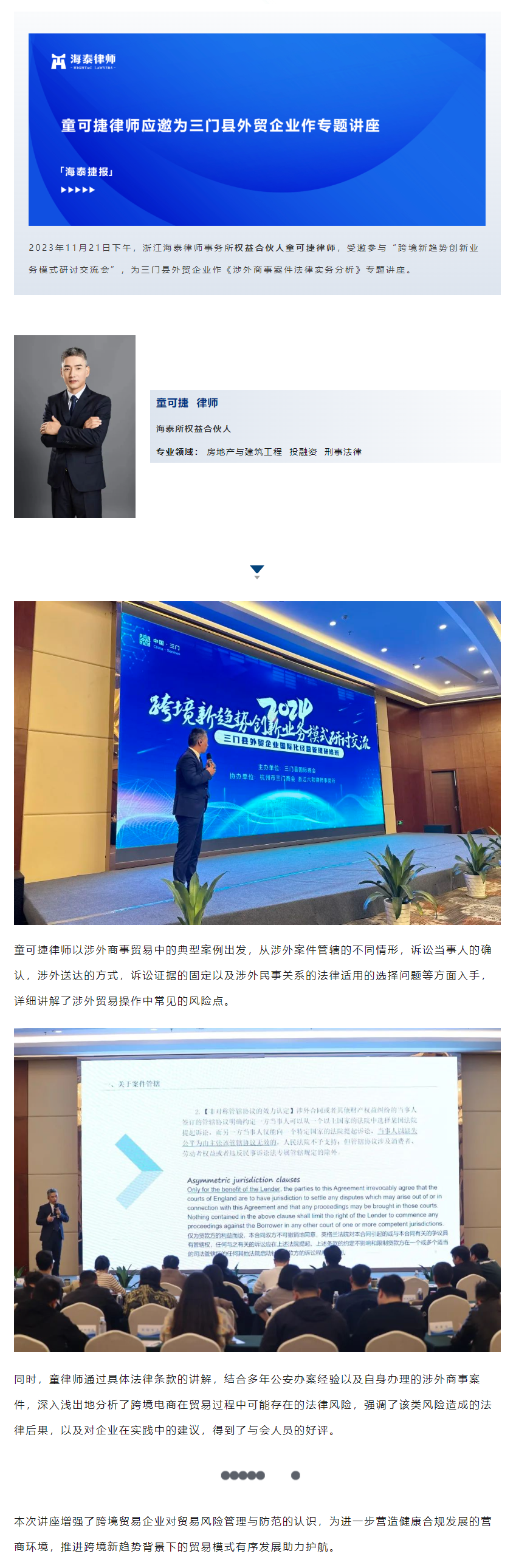 童可捷律师应邀为三门县外贸企业作专题讲座 | 海泰简讯