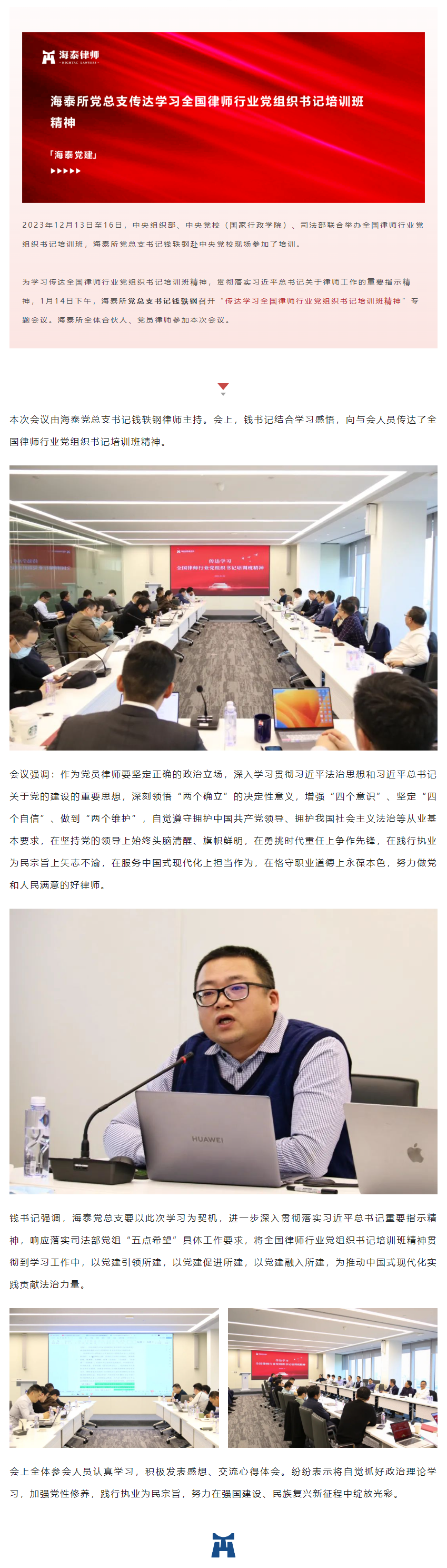 海泰所党总支传达学习全国律师行业党组织书记培训班精神 | 海泰党建
