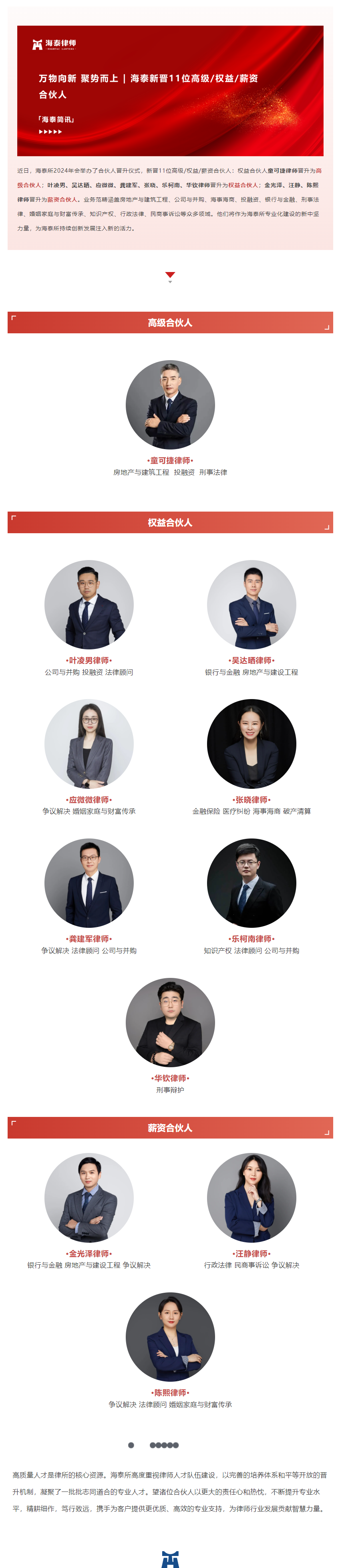 万物向新 聚势而上 | 海泰新晋11位高级/权益/薪资合伙人