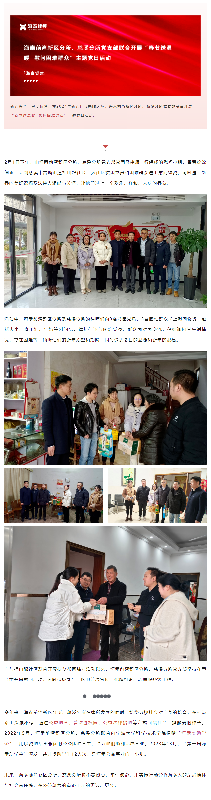 海泰前湾新区分所、慈溪分所党支部联合开展“春节送温暖 慰问困难群众”主题党日活动