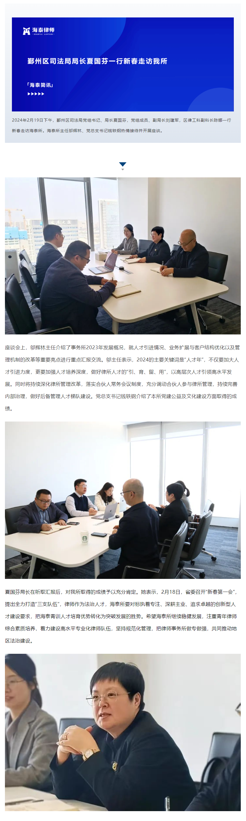 鄞州区司法局局长夏国芬一行新春走访我所