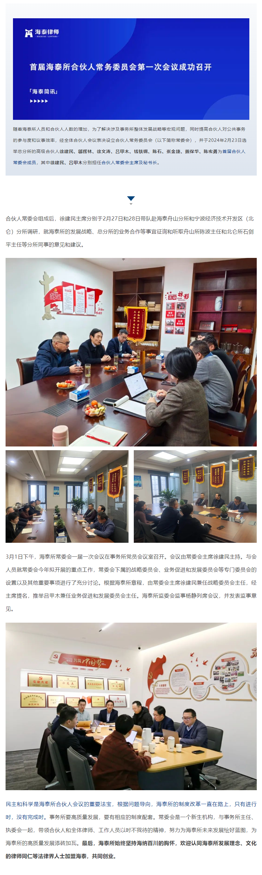 首届海泰所合伙人常务委员会第一次会议成功召开 | 海泰简讯