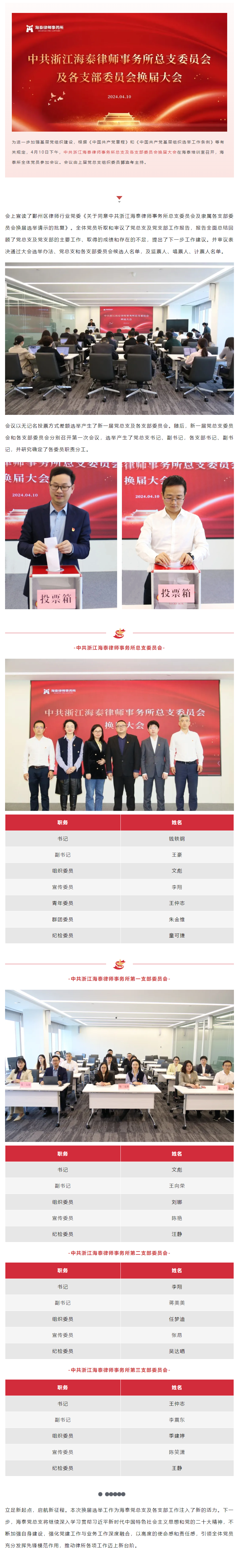 中共浙江海泰律师事务所总支委员会及各支部委员会换届大会圆满举办
