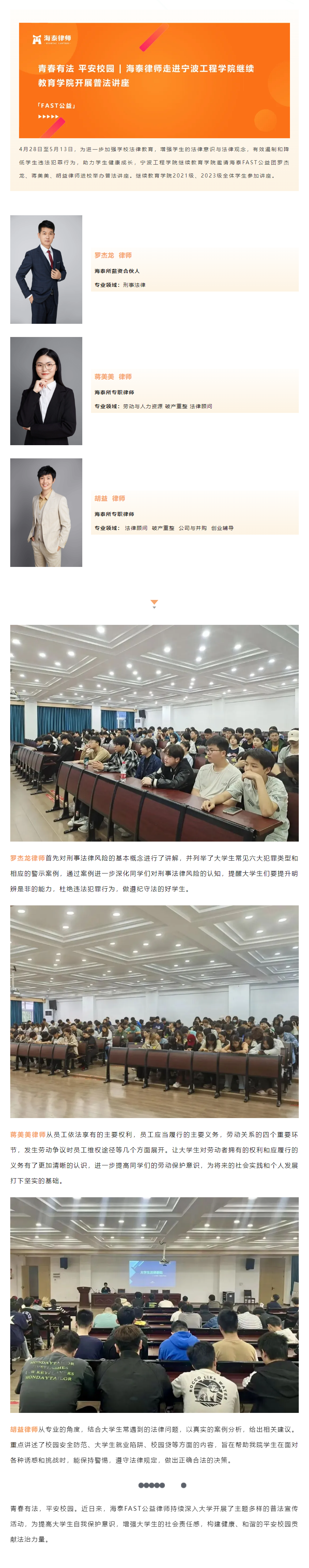 青春有法 平安校园 | 海泰律师走进宁波工程学院继续教育学院开展普法讲座