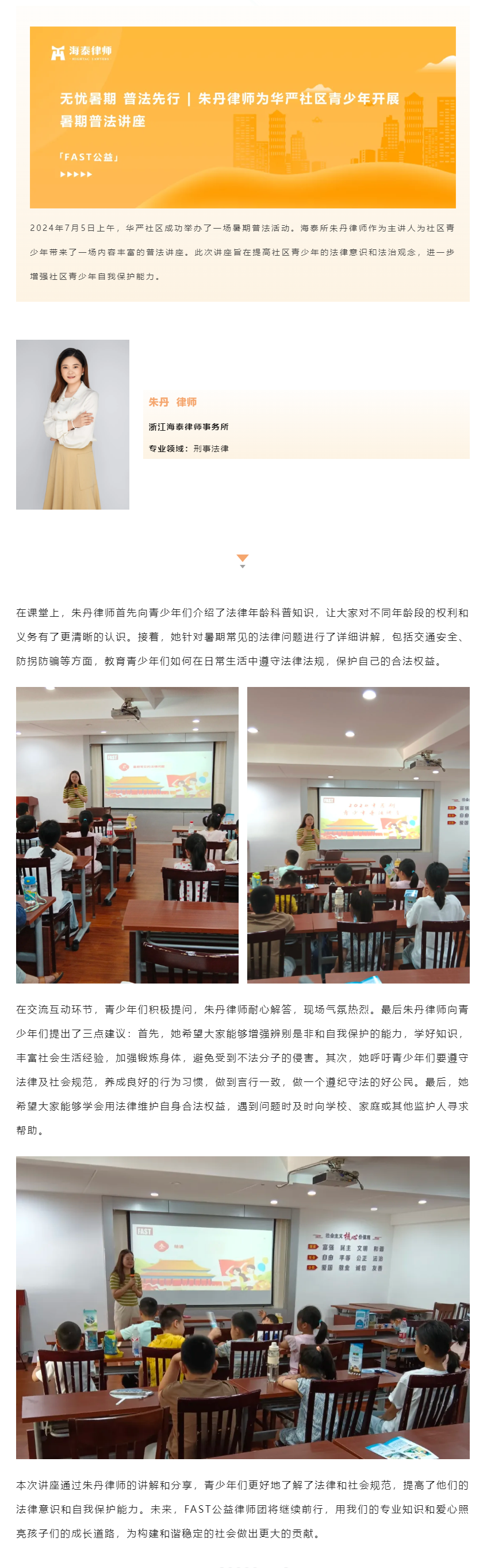 无忧暑期 普法先行 | 朱丹律师为华严社区青少年开展暑期普法讲座