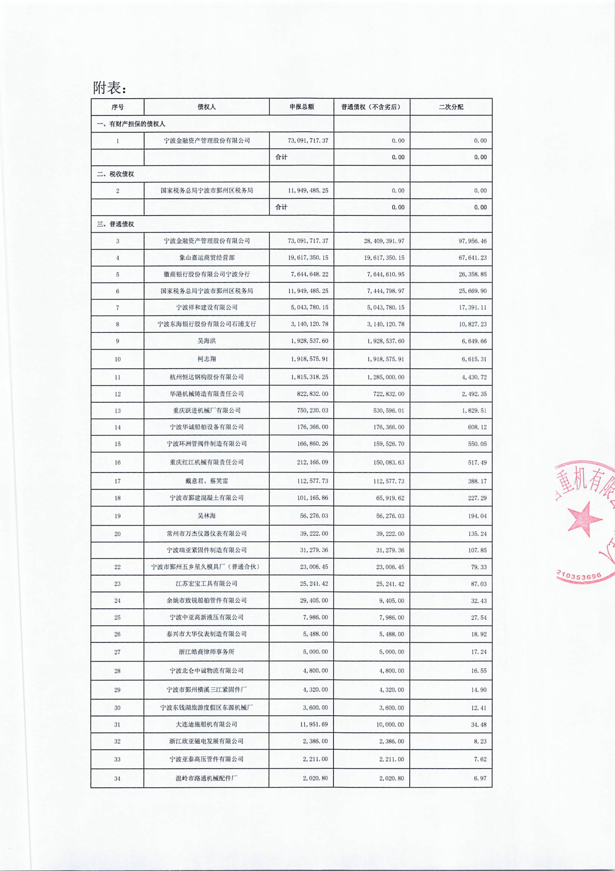 慈溪市工业品批发市场经营服务有限公司破产财产分配公告