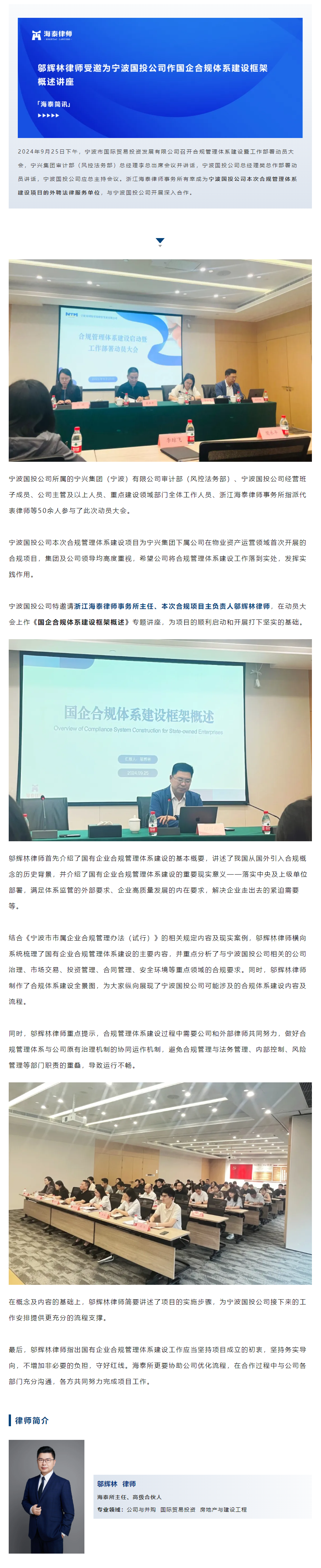 邬辉林律师受邀为宁波国投公司作国企合规体系建设框架概述讲座