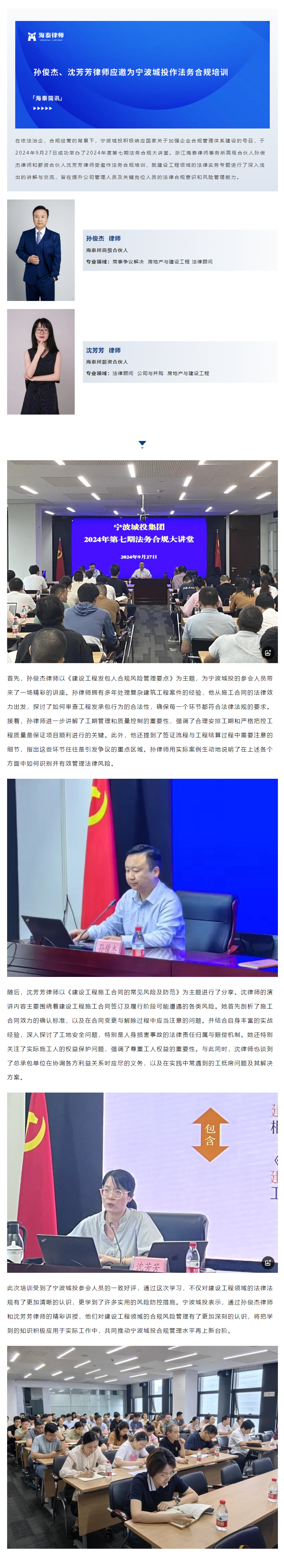 孙俊杰、沈芳芳律师应邀为宁波城投作法务合规培训 | 海泰简讯