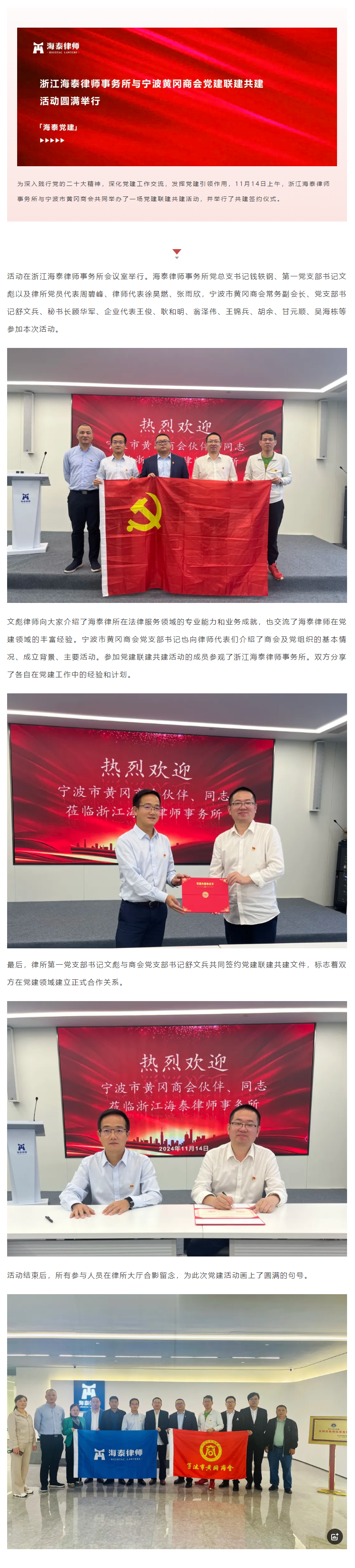 浙江海泰律师事务所与宁波黄冈商会党建联建共建活动圆满举行