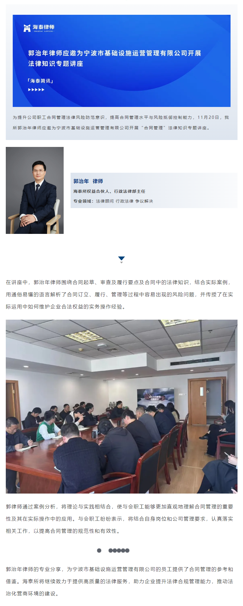 郭治年律师应邀为宁波市基础设施运营管理有限公司开展法律知识专题讲座