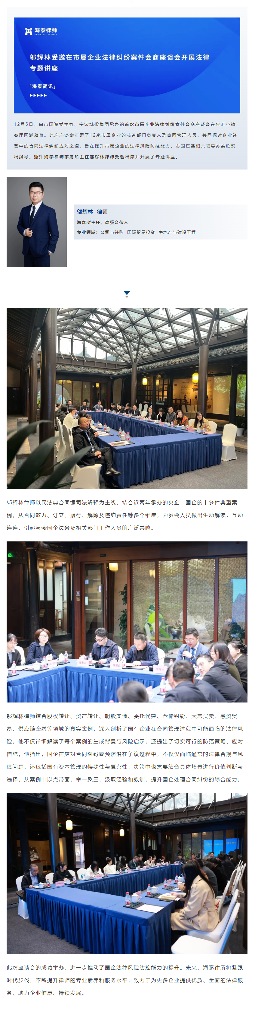 邬辉林受邀在市属企业法律纠纷案件会商座谈会开展法律专题讲座