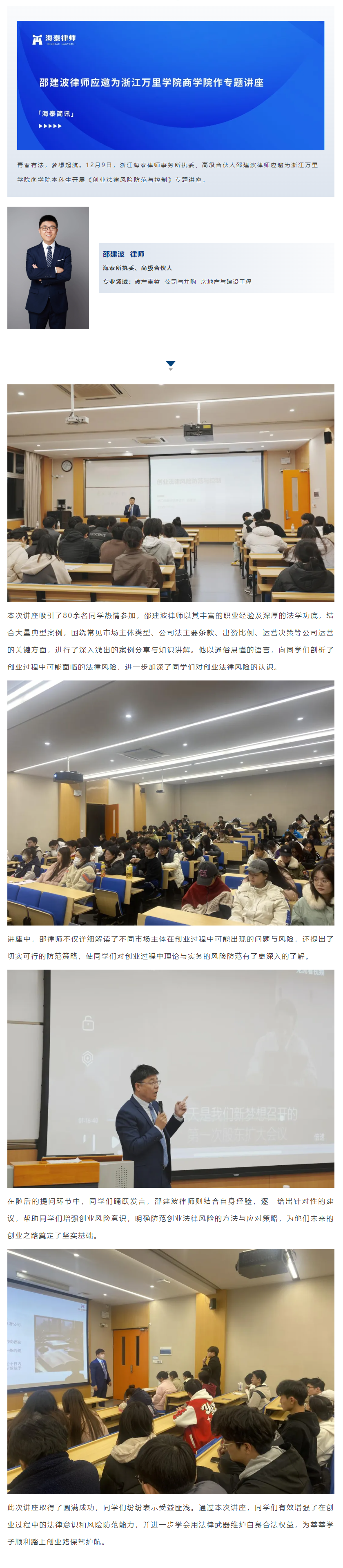邵建波律师应邀为浙江万里学院商学院作专题讲座