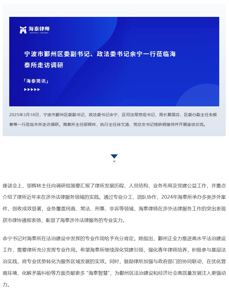 2023 © 浙江海泰律师事务所 Copyright © Hightac PRC Lawyers All Rights Reserved
