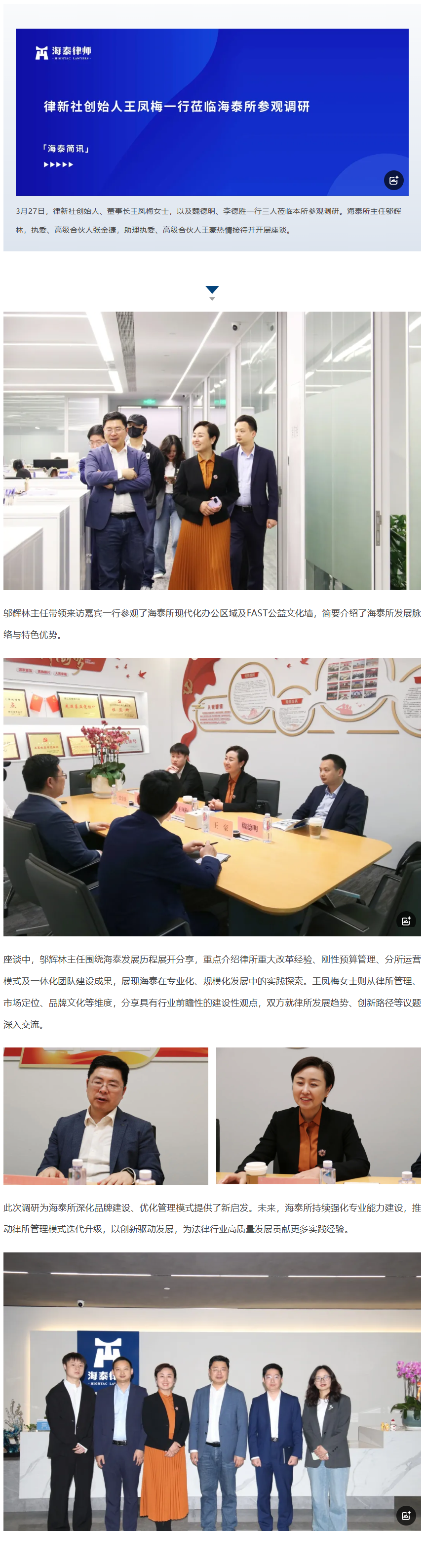 律新社创始人王凤梅一行莅临海泰所参观调研