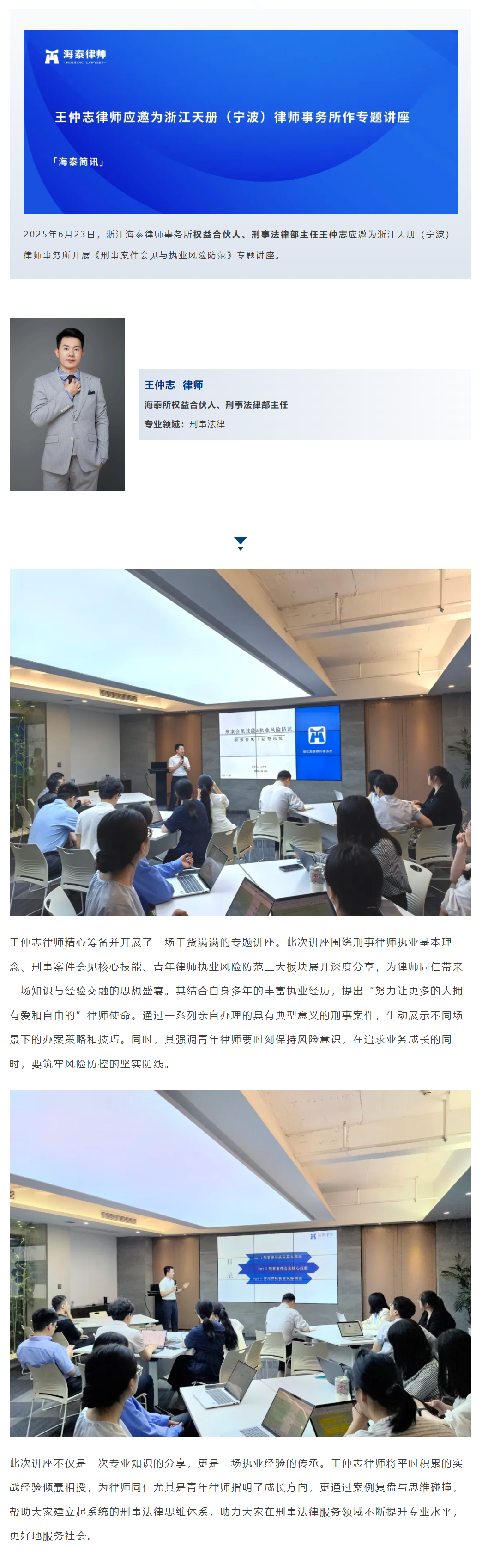 王仲志律师应邀为浙江天册(宁波)律师事务所作专题讲座 | 海泰简讯