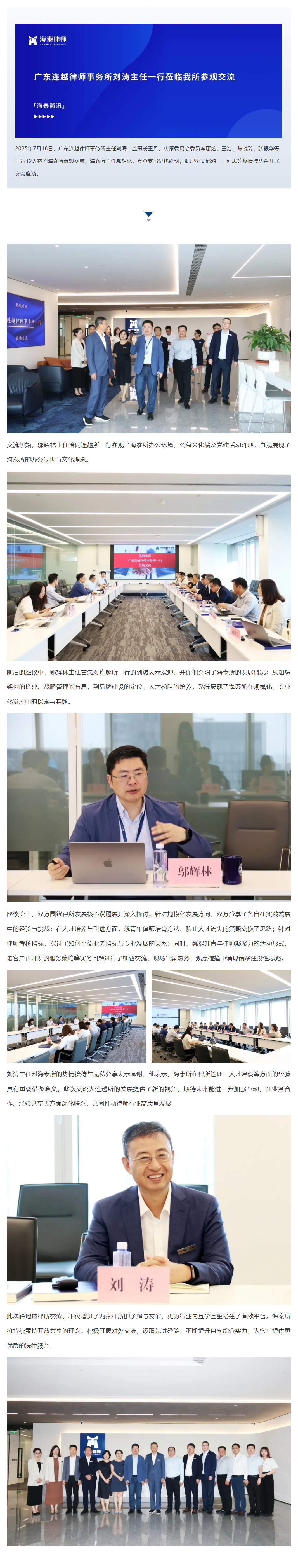 广东连越律师事务所刘涛主任一行莅临我所参观交流 | 海泰简讯