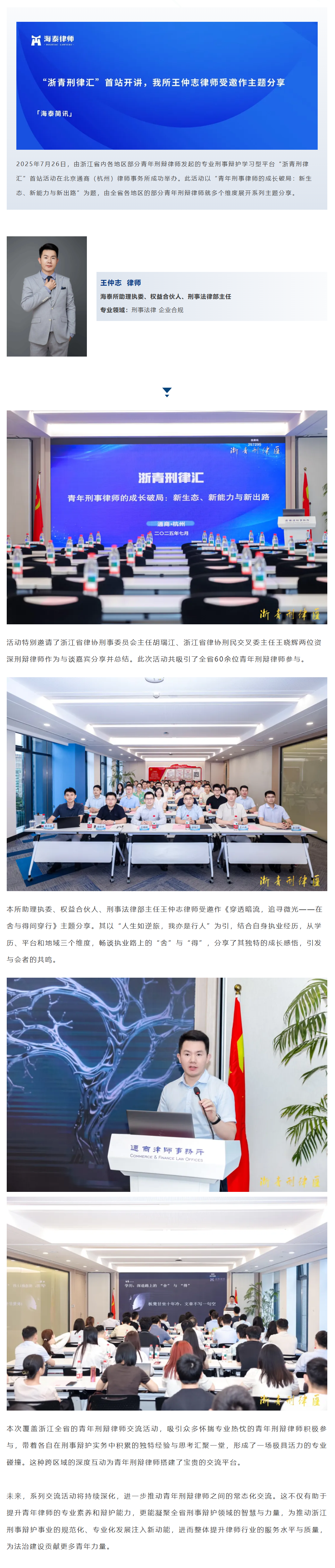 “浙青刑律汇”首站开讲,我所王仲志律师受邀作主题分享 | 海泰简讯