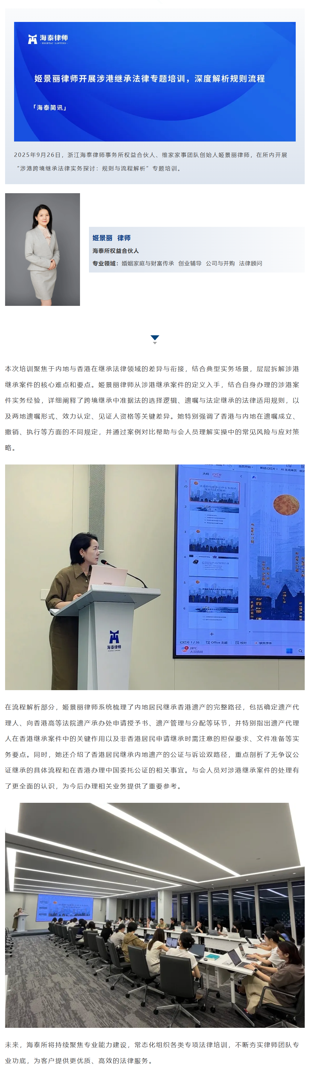 姬景丽律师开展涉港继承法律专题培训,深度解析规则流程