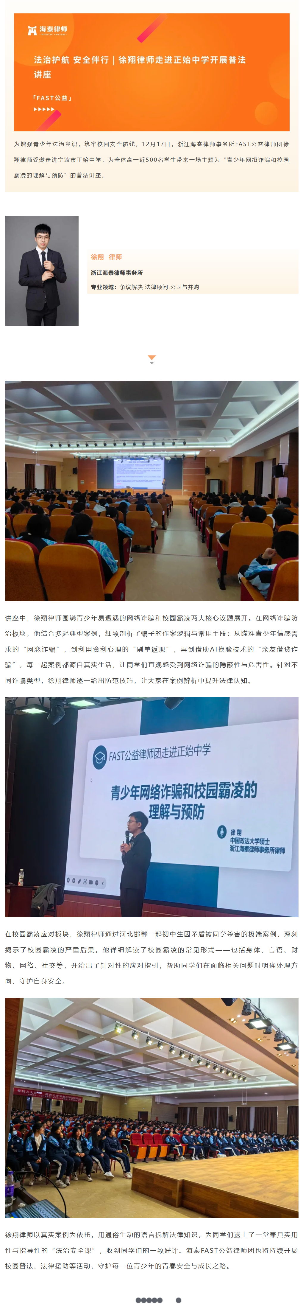 法治护航 安全伴行 | 徐翔律师走进正始中学开展普法讲座