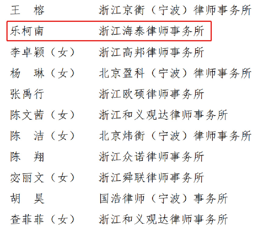 王仲志、乐柯南律师荣获2019-2020年度宁波市“十佳青年律师”“优秀青年律师”