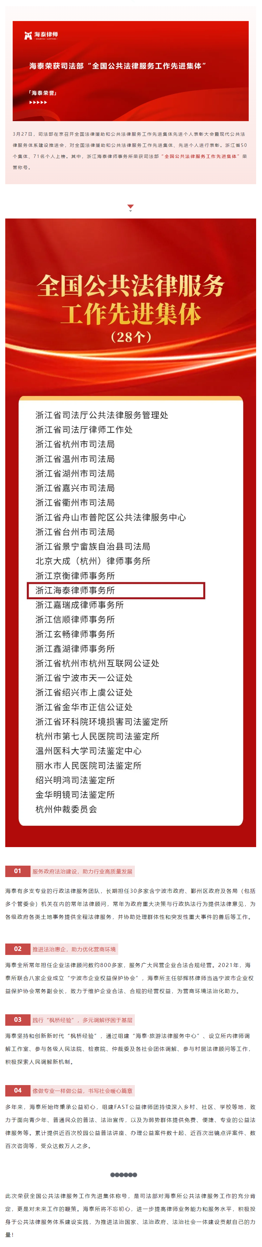 海泰荣获司法部“全国公共法律服务工作先进集体”