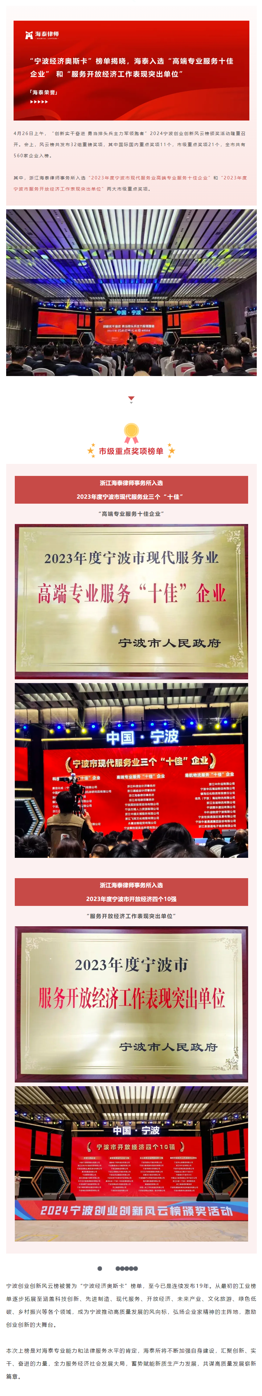 “宁波经济奥斯卡”榜单揭晓,海泰入选“高端专业服务十佳企业” 和“服务开放经济工作表现突出单位”