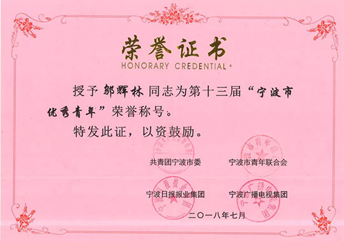 海泰所主任邬辉林荣获“宁波市优秀青年”称号