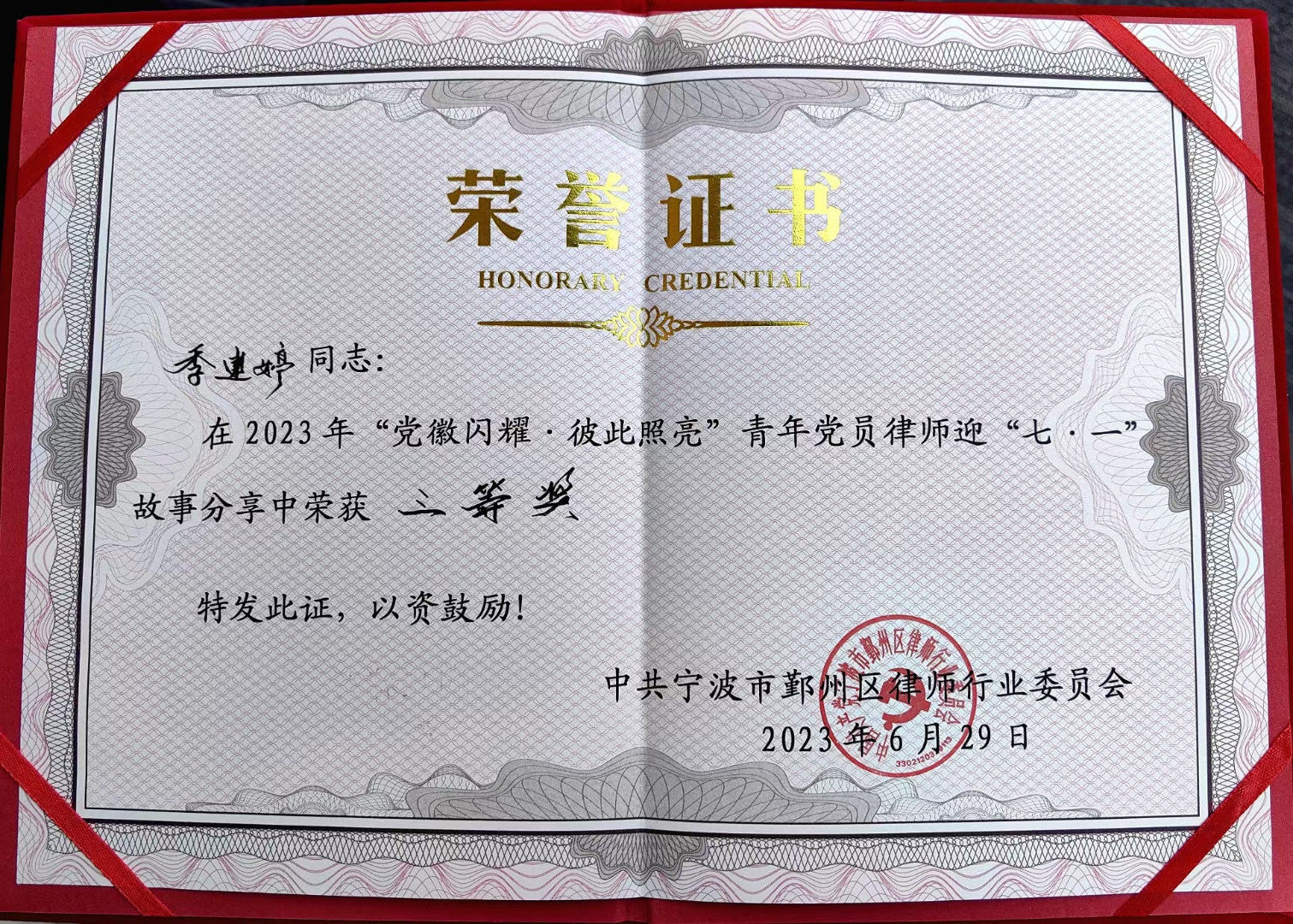 季建婷律师在鄞州区行业党委“党徽闪耀·彼此照亮”青年党员律师迎"七一"
