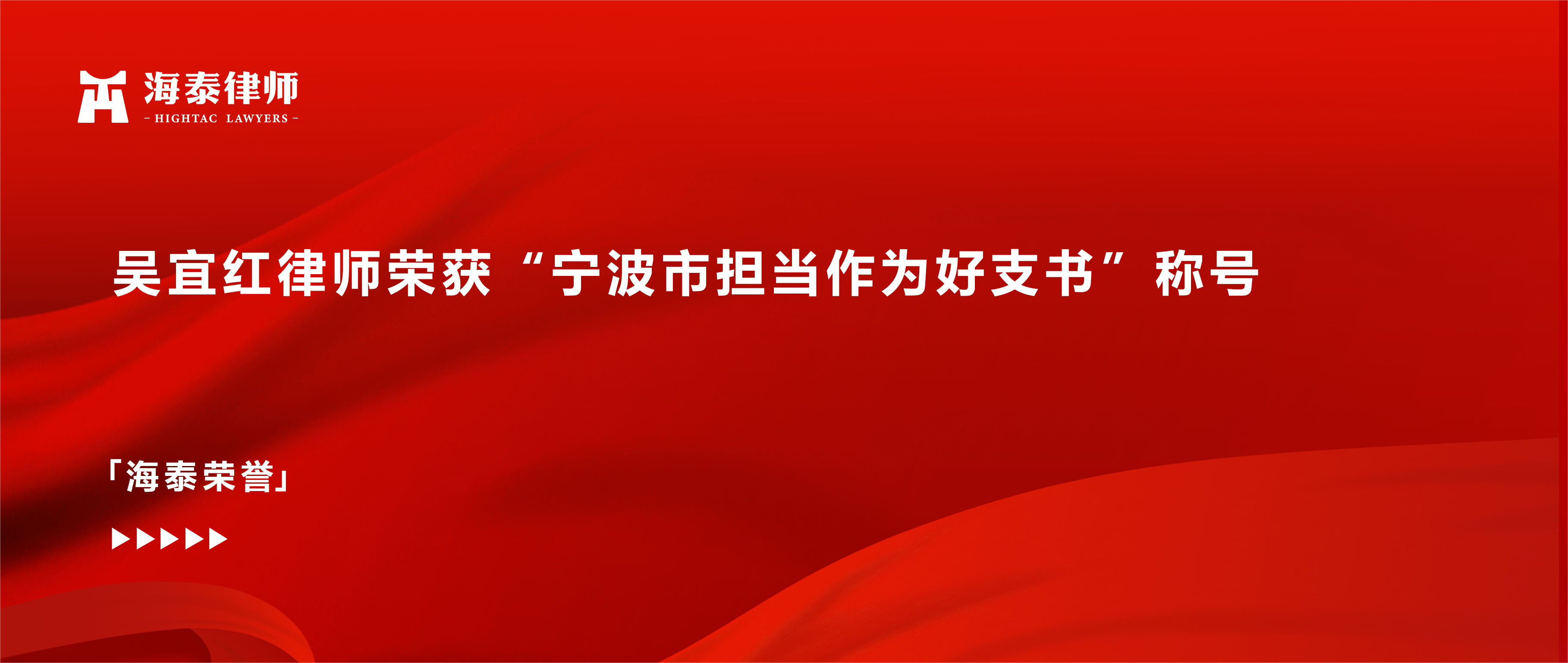吴宜红律师荣获“宁波市担当作为好支书”称号 | 海泰荣誉