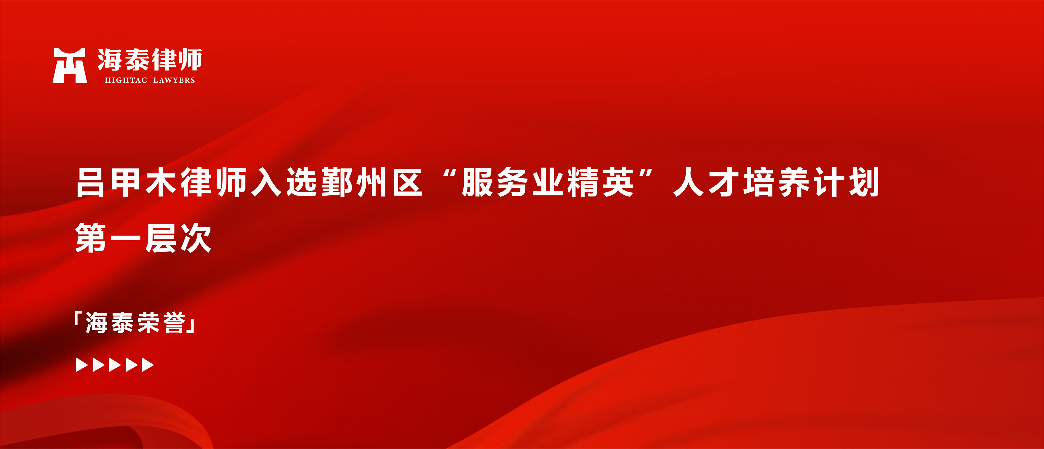 吕甲木律师入选鄞州区“服务业精英”人才培养计划第一层次 | 海泰荣誉
