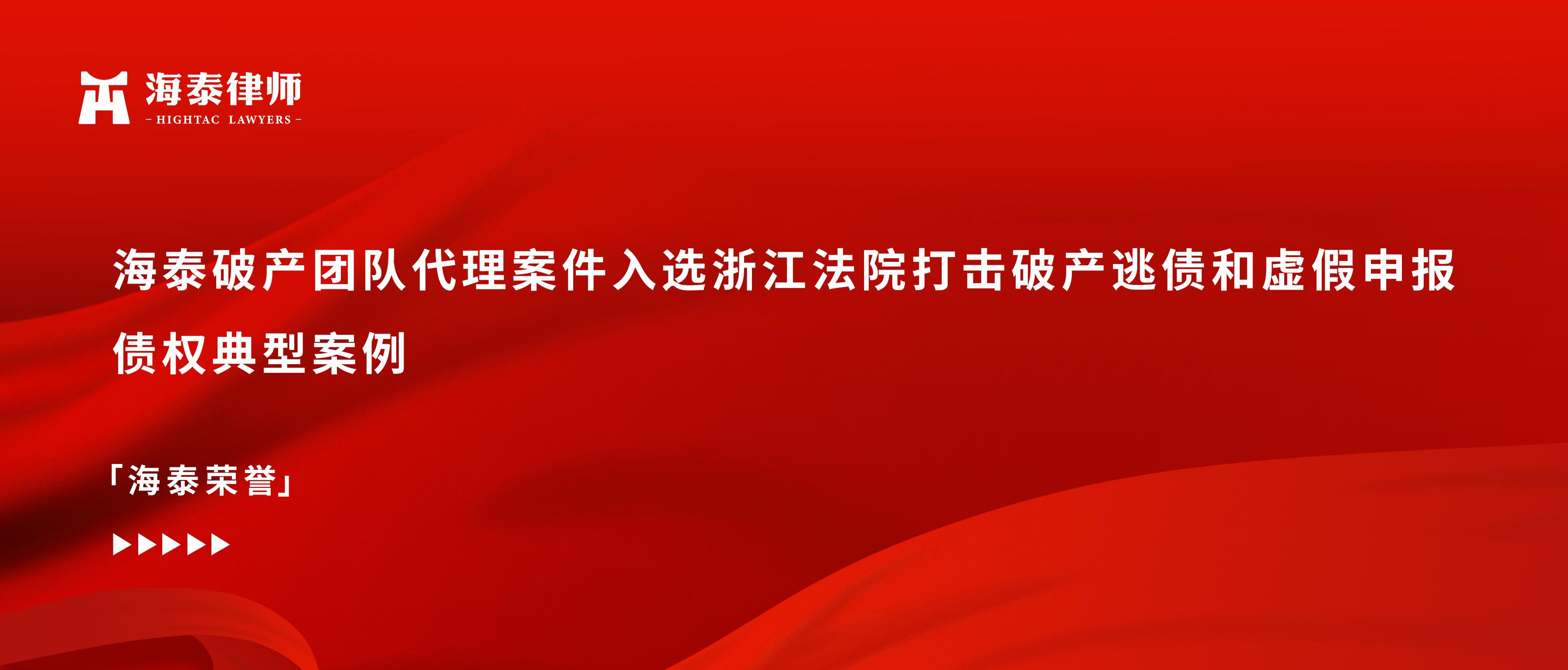 海泰破产团队代理案件入选浙江法院打击破产逃债和虚假申报债权典型案例