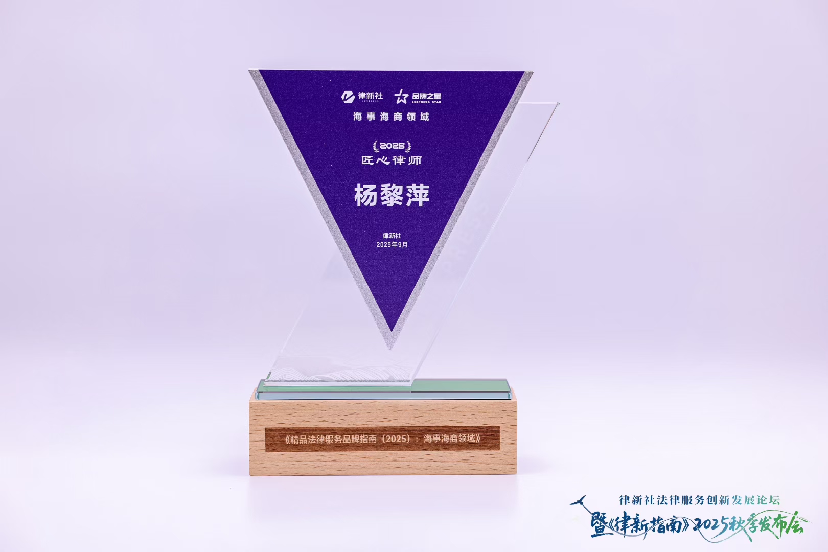 杨黎萍律师荣膺律新社2025年度海事海商领域“品牌之星・匠心律师”