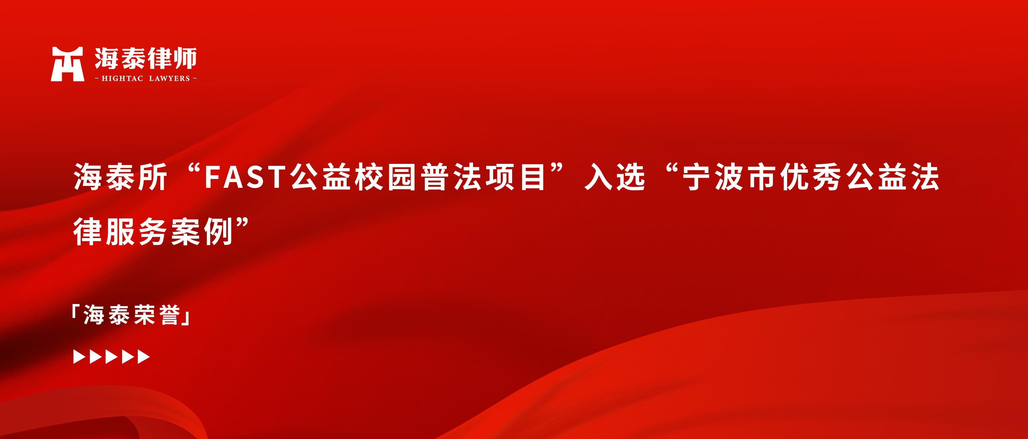 海泰所“FAST公益校园普法项目”入选“宁波市优秀公益法律服务案例”
