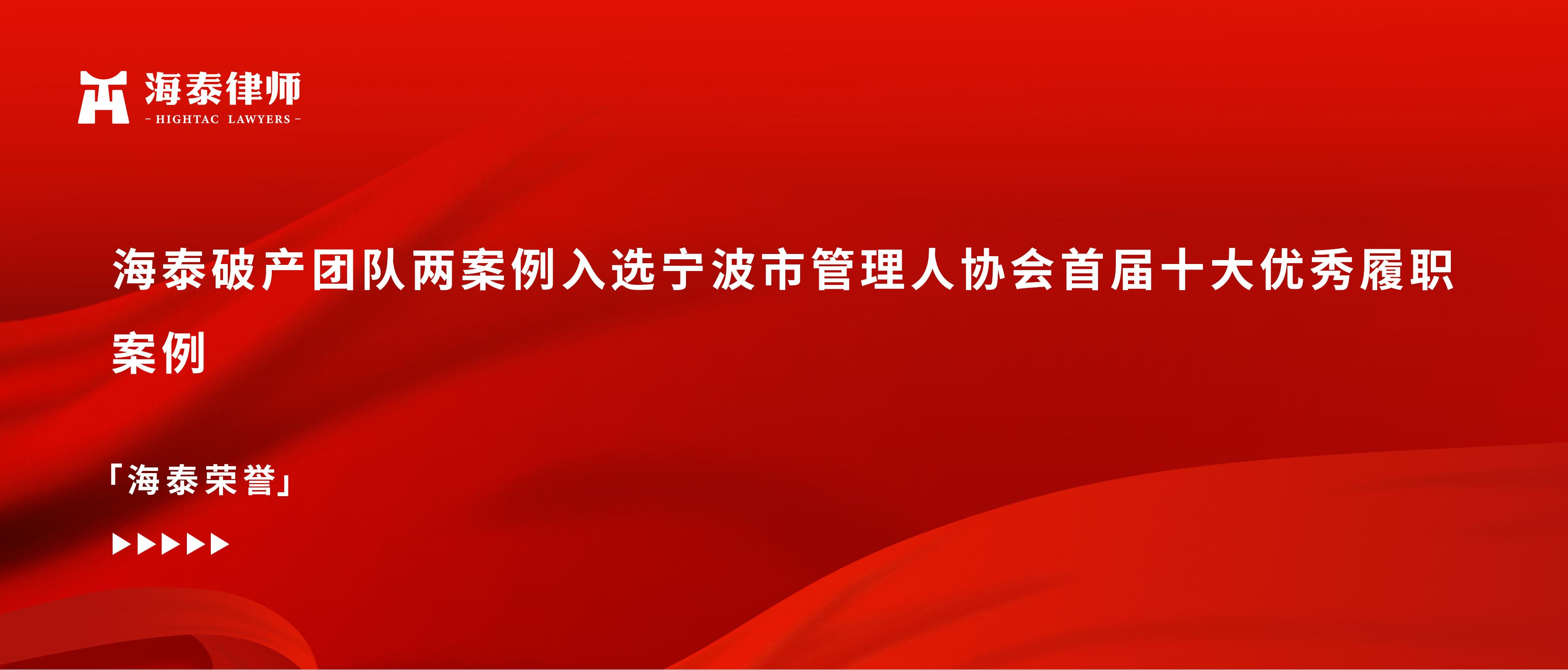 海泰破产团队两案例入选宁波市管理人协会首届十大优秀履职案例